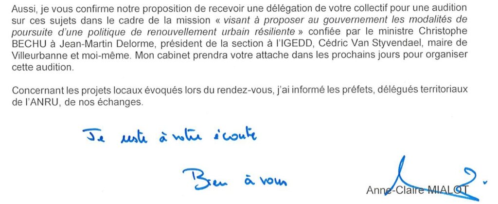 Réponse de Mme Mialot au collectif « Stop démolitions »