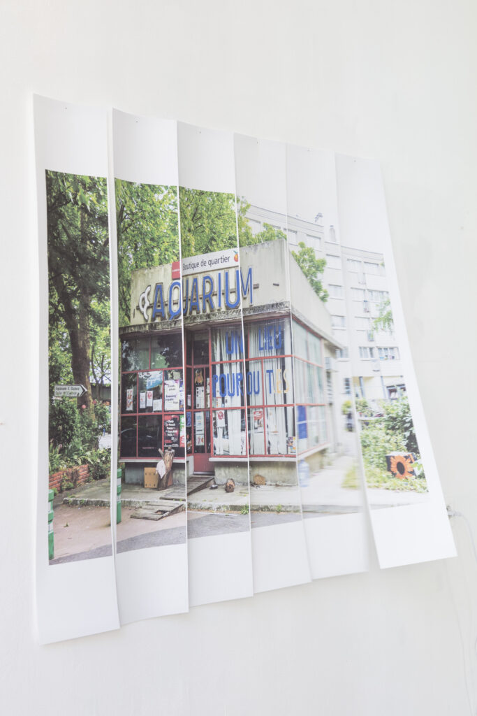 « Dans le cadre de la future démolition du bâtiment «Aquarium» accueillant plusieurs associations dont une de couture, j’ai mené une permanence artistique d’un mois. Cette présence m’a permis de rencontrer et de collaborer avec les femmes qui fréquentent cet espace, en ouvrant un dialogue autour des dimensions symboliques, sociales et personnelles liées à cette disparition. Au terme de ce travail collectif, une structure de 6 mètres sur 2,5 mètres a été construite. Elle reprend les dimensions exactes d’une partie du bâtiment qui fait office d’espace public dédié aux femmes. D’autres œuvres complémentaires ont également été créées, comme un carnet de bord vidéo reprenant les étapes de création, des photographies présentant l’atmosphère du lieu et un livre en tissu retraçant le chemin des femmes se rendant à l’Aquarium. » Lilit Letourneur Un lien vers une vidéo autour de la production du projet est disponible ici.